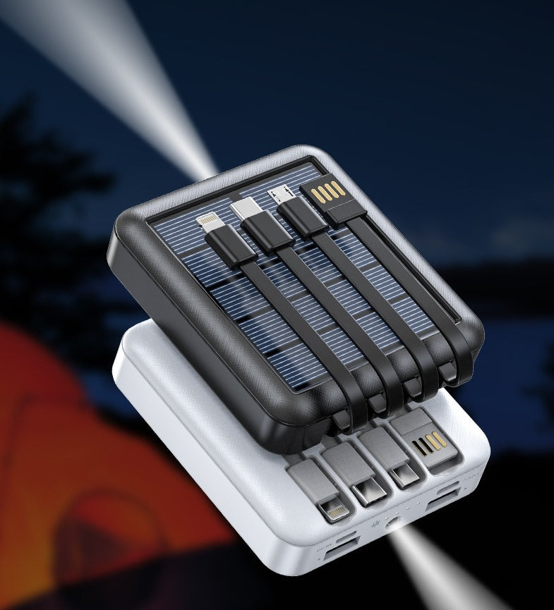 Powerful enough to charge your phone 2–3 times. Features a built-in solar panel, dual USB ports, and LED indicators. Ideal for camping, travel, and emergency use.