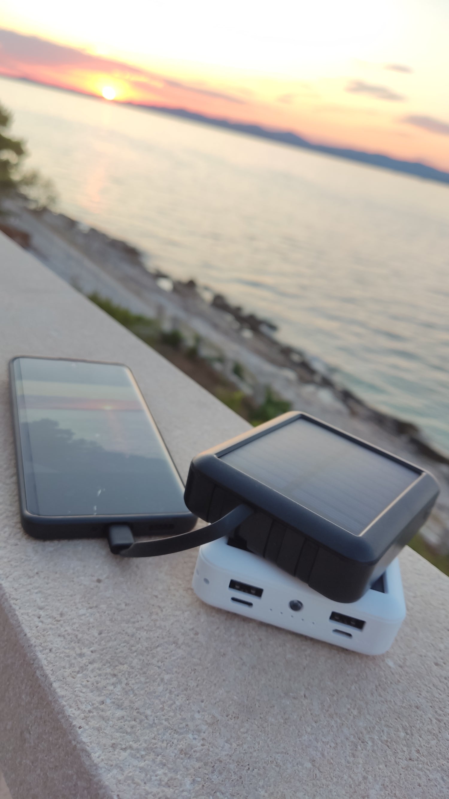 🔋⚡ USB charging for speed. Solar power for safety. Charge the power bank fully at home via USB for fast and reliable energy. Then let the built-in solar panel keep you going when you're off the grid — perfect for camping, hiking, and emergencies.
